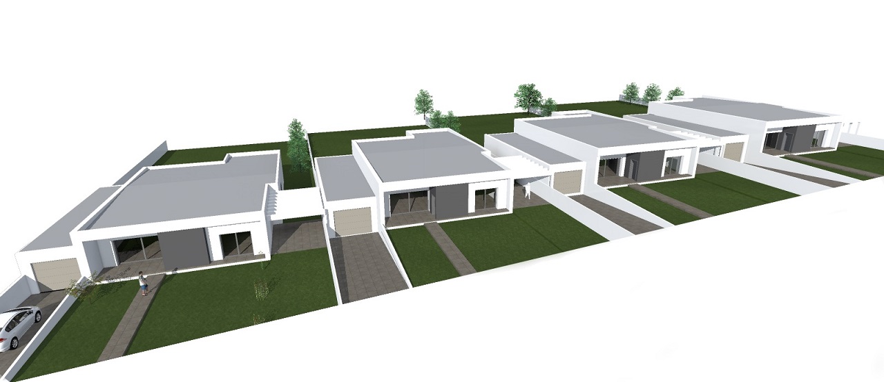 Conjunto habitacional - Casal dos MatosMoradia de rés do chão com lotes de terreno até 1050 m2.Arquitetura e síntese de acabamentos Planta de implantação 1 e 2 Preço sob consulta |